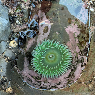 Afterwards, we checked out the town of Forks, then headed to Rialto Beach, where we did the 3.3-mile hike to Hole-in-the-Wall, a sea-carved arch, which can only be reached around low tide (top middle photo). The area near Hole-in-the-Wall includes rocky tidal pools, which were fascinating to watch. We were able to spot starfish, sea anemone, sea snails, mussels, and other small sea creatures in the pools. The hike was challenging, as the beach is composed of small pebbles and cobbles, sediment that was deposited by glaciers during the ice age. The beach also has hundreds of bleached fallen trees at the edge of the shoreline and several rock formations or sea stacks that were beautiful to see in the surf.